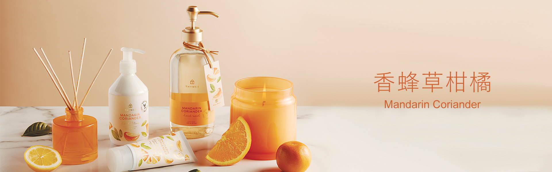 香蜂草柑橘 Mandarin Coriander 融合桔橙、葡萄柚、檸檬香脂與甜橙...所呈現的酸甜果香前調,同時注入馬鬱蘭、芫荽、迷迭香、愛爾蘭海草、大西洋雪松和常春藤...等愜意的草本清香,餘韻深刻,使人回味。