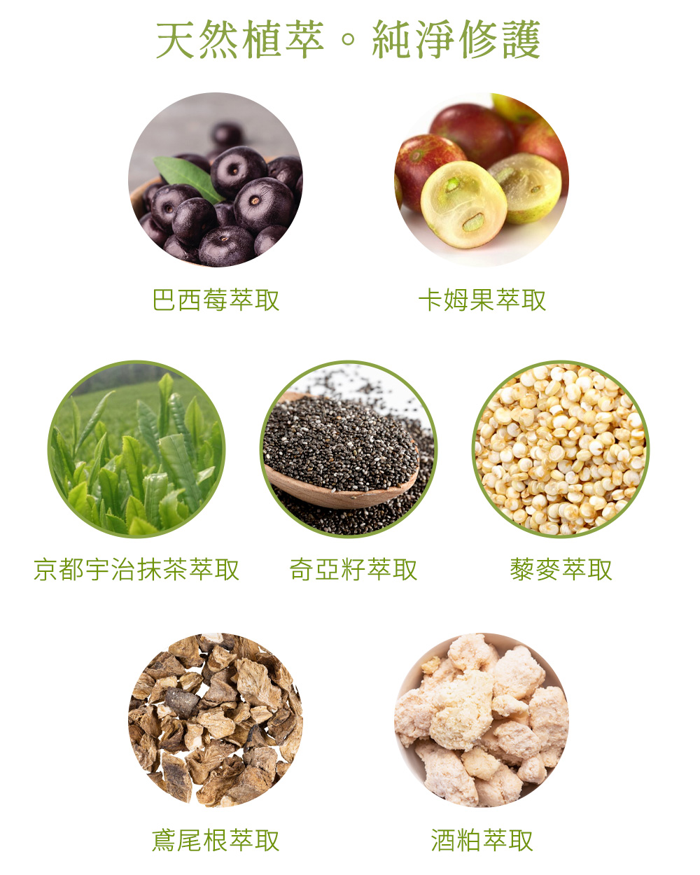 ◆ 超級抗氧化萃取:抹茶、藜麥、巴西莓等