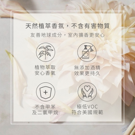 - 植物萃取,友善地球配方的安心香氣