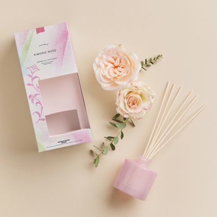 Kimono Rose 和服玫瑰香氛瓶,蘊含保加利亞玫瑰、茉莉與牡丹的綜合花香,略帶克萊門橘的酸甜與黑醋栗的果香,富有層次的香氣,猶如日本和服般層層疊加,完美地交織出熱情、自信與甜美的迷人花香氣。