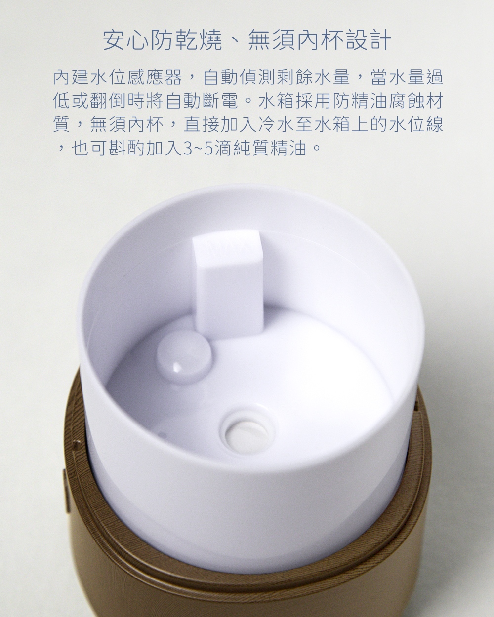 (1)請使用 100% 純質精油(不適用調和精油如 5%、10%,以及古龍水、香水、芳香劑等)非純質精油易引起機器故障,減短機器使用壽命,請切勿使用,若因使用非純精油造成之故障,亦將不在保固範圍內。