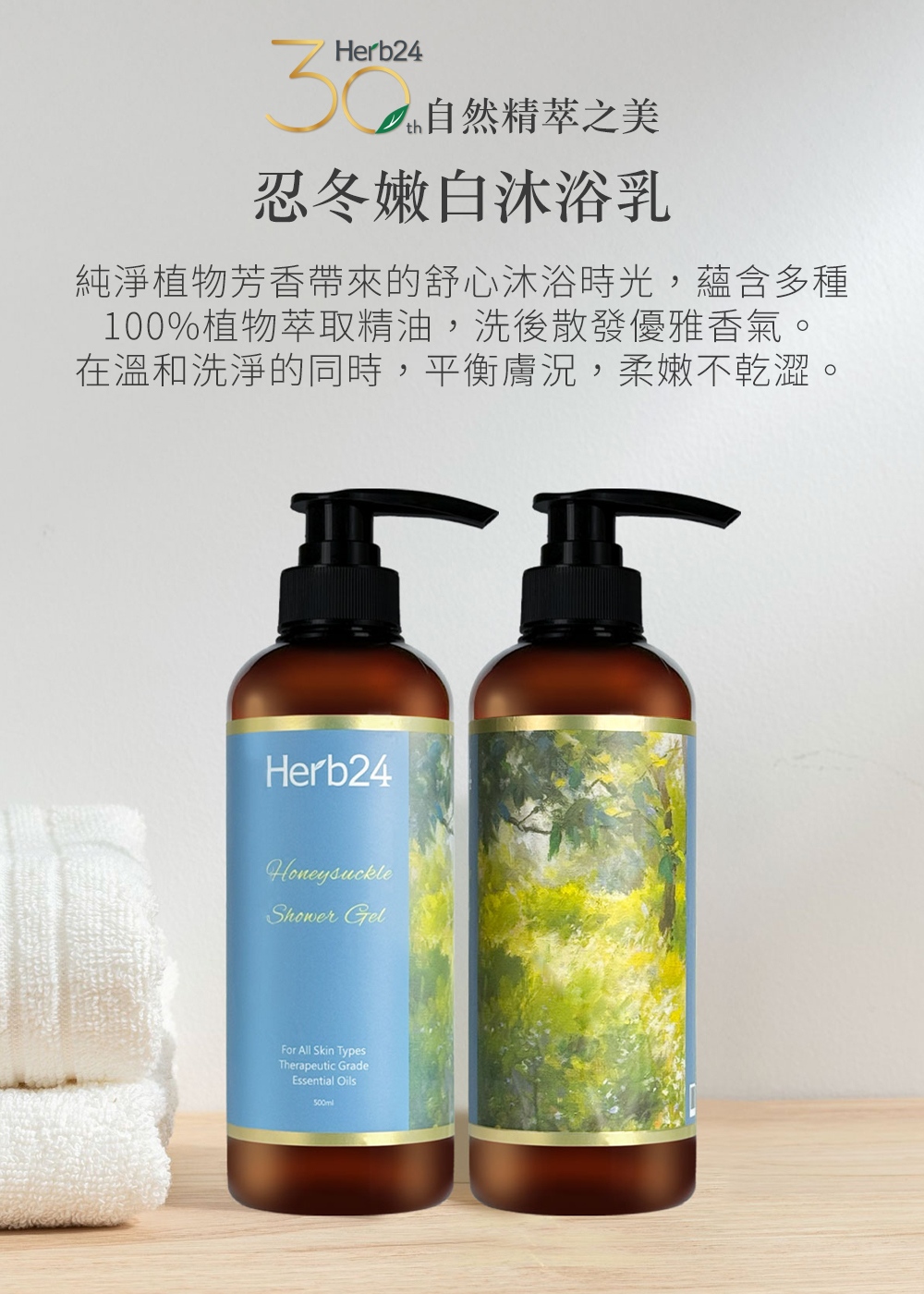 感受30年的自然精萃之美!富含忍冬、甜橙、黑雲杉等植萃精油,洗後散發優雅香氣,驅散整日 的疲憊心情,在溫和洗淨肌膚的同時注入養分,持久感受絲滑觸感。