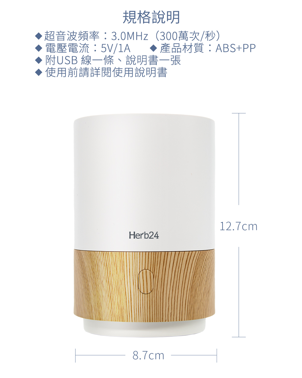 Herb24 微光高頻負離子水氧機 – 淺木紋