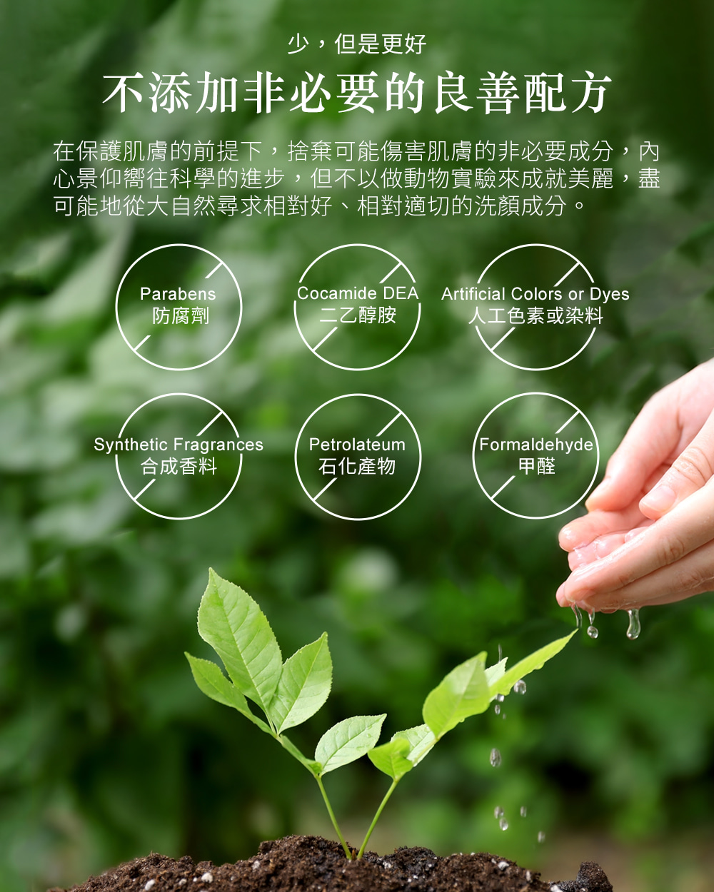 • 茶樹萃取:深層清潔,舒緩粉刺痘痘肌