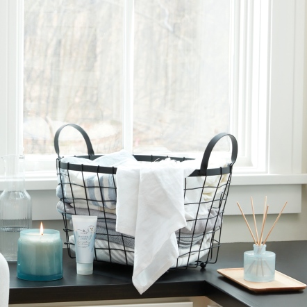 Washed-Linen 雪松薰衣草香氛瓶,融合香醇沉穩的雪松木、純淨療癒的薰衣草、酸中帶甜的葡萄柚,揭開清新香氣的序曲,隨即注入微微辛香氣味的白胡椒與沉著木質香調的琥珀,彷彿像是衣物面料上舒服的「陽光氣味」。美麗的淡藍色玻璃瓶,盛裝香氛油,讓優雅細長的藤枝吸收香氣後釋放在整個空間,打造視覺與嗅覺的美好饗宴。