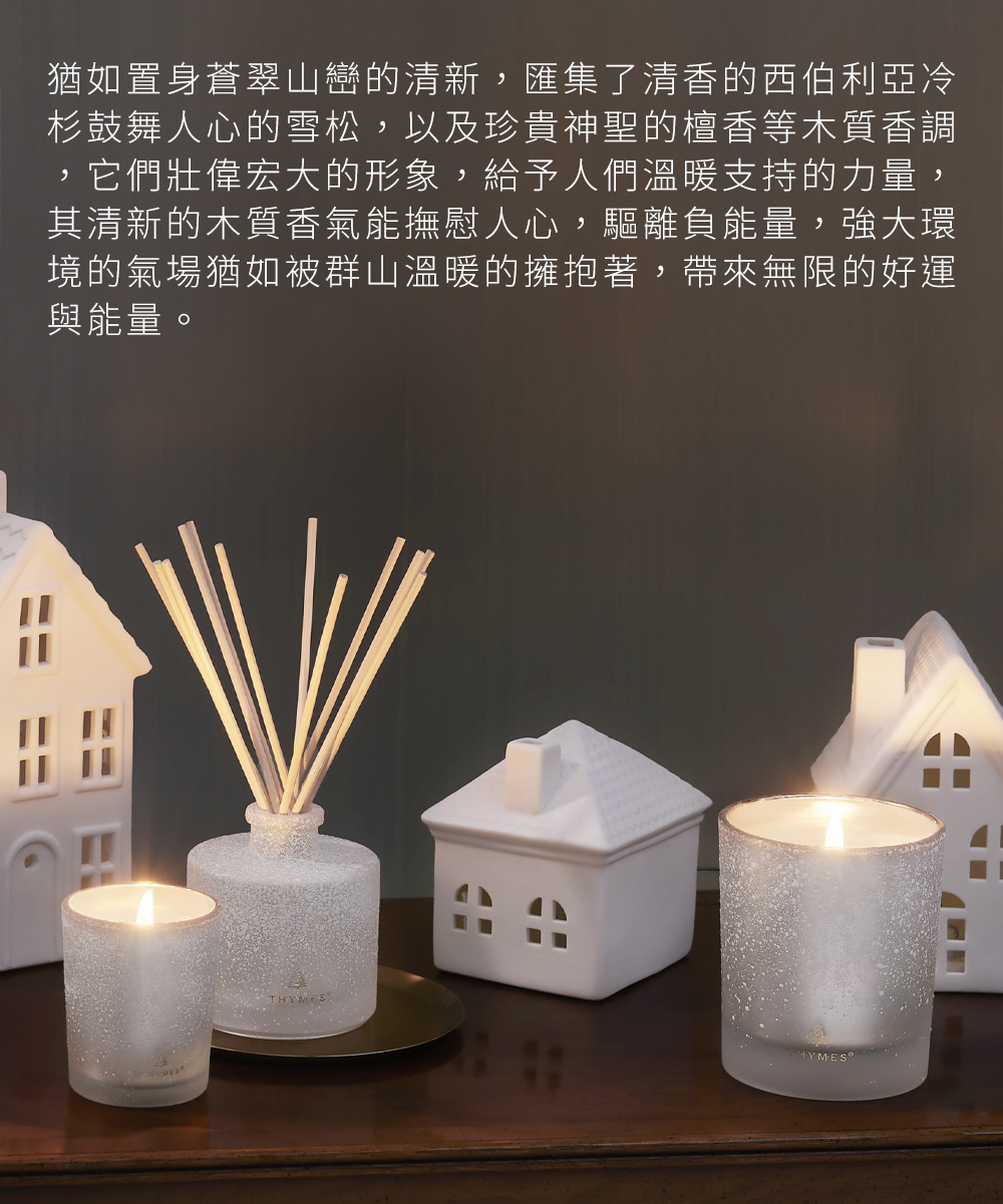 Frasier Fir 冷杉新綠系列,猶如置身蒼翠山巒的清新幽靜。匯集多種植物菁華,清香的西伯利亞冷杉;鼓舞人心的雪松,以及舒緩放鬆的檀香,彷彿置身蒼翠山巒。充滿鮮切的綜合木質清香氣息,令人感到無比的清新與溫暖,將之置放於居家環境,與最愛的家人分享,整個家就像被群山擁抱著。